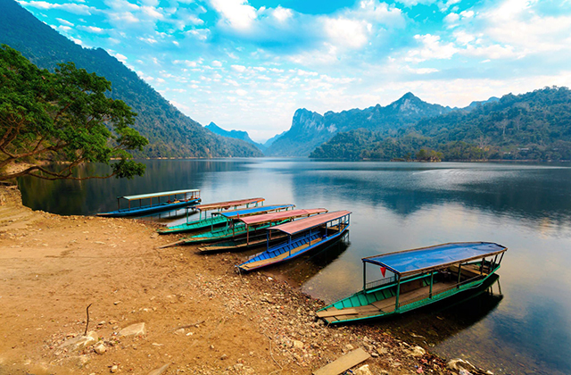 Departing Hanoi at 8 a.m we embark on a route up into mountain areas north of Hanoi, onwards to Ba Be Lake National Park, one of the largest natural lakes in Vietnam, home to many kinds of birds, scenic valleys, towering rocky outcrops, underground river tributaries, a gigantic cave and local ethnic minorities, including the Tay, Red Dao and Hmong.