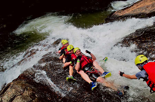 After the crazy water sliding, we take a walk along the river leading us to the biggest waterfall (25m) for some real abseiling through the water. This time canyoning experts will give you some good instructions and techniques for getting over the hardest waterfall.