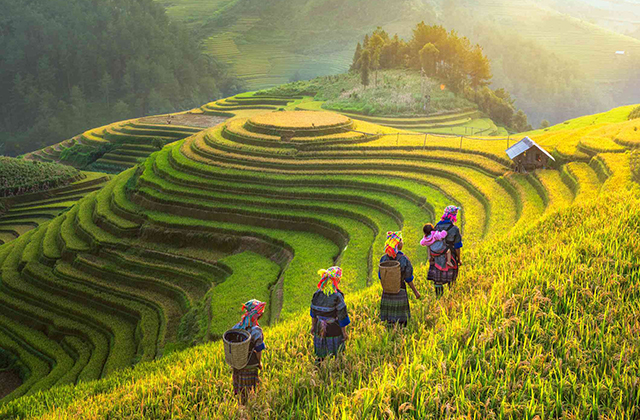 Wait until 12:30 pm, when we arrive in Sapa town that is well-known for its finest, rugged landscapes and its cultural abundance. You’re going to have lunch at the local restaurant before checking in the hotel.
