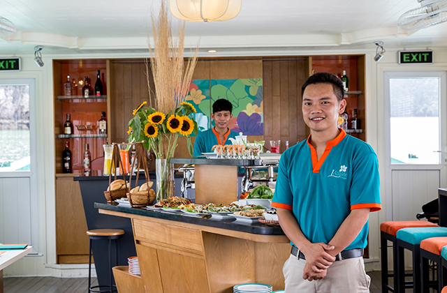 14:45 The boat will move to Hang Luon “Luon Cave” area, a water cave for kayaking, rowing bamboo boat. If you do not join any above activities, you could stay on sundeck for relaxing.