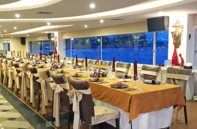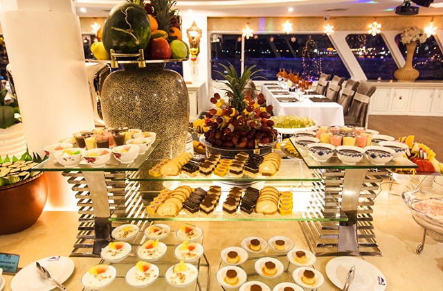 Princess Cruise is 100 % new, the entire frame is made of steel , painted in white,with new and stylish design with luxurious and state-of the-art equipment. The cruise has a length of 60m & 14m width, with 2-storey restaurant for guests dining, banquet and conference facilities. There are two theatrical performances, the Foreign and Vietnam traditional band on each floor, special ethnic and belly dance will be arranged in the evening cruise. Buffet counter is placed in the middle of the restaurant, 2 Indoor Bars, 1 Sundeck Sky Bar on the third floor offer passengers a wide view for relaxing or taking photos on the Bay.